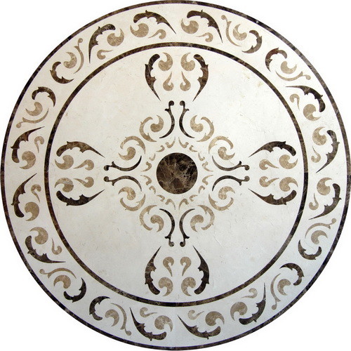| Process | Stone medallion cut by water jet from natural colorful stone, fit together and mounted on mesh or tiles by experienced worker, can be various colors, patterns and sizes, suitable for indoor and outdoor space. |